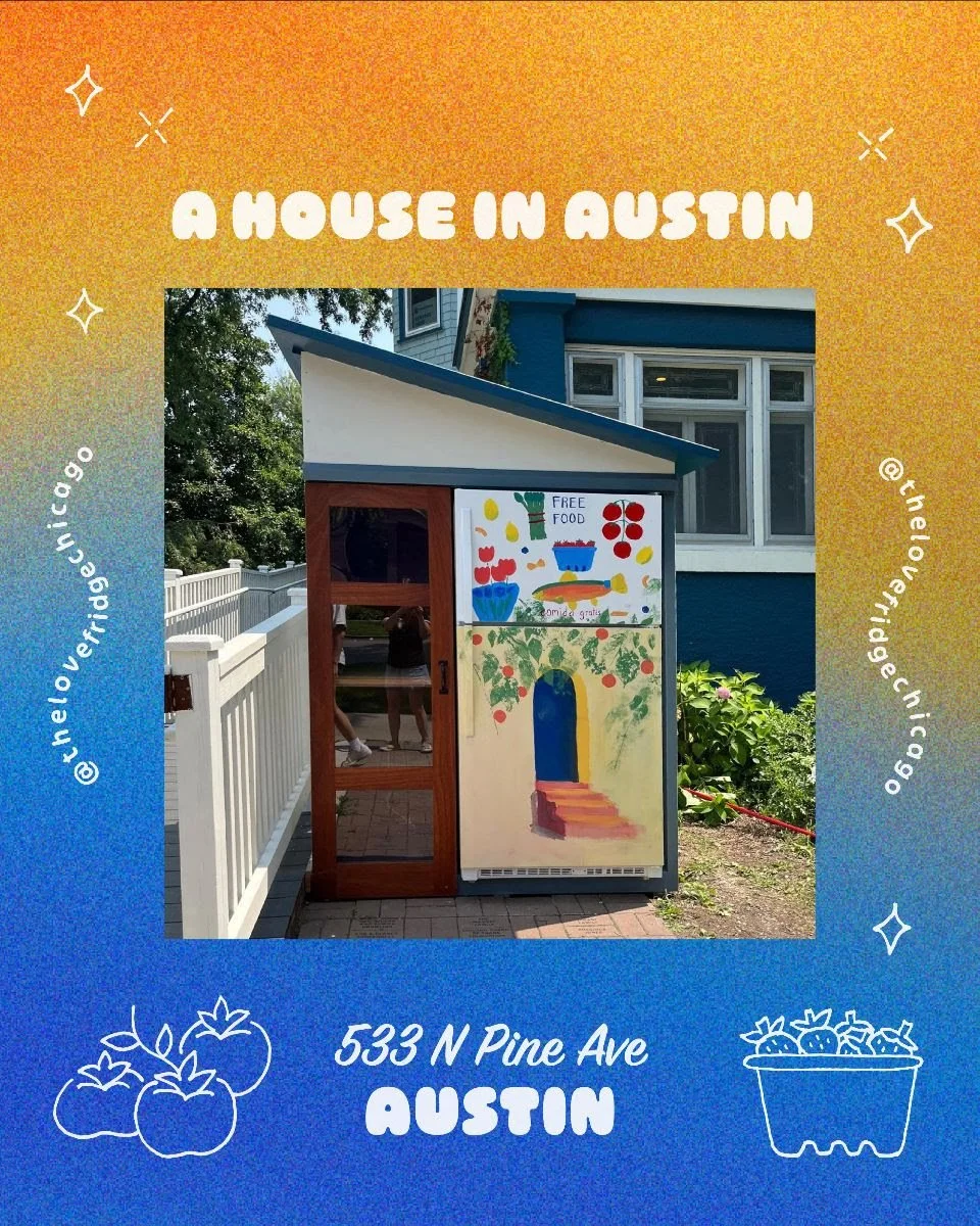 Since establishing the first Love Fridge in the Austin neighborhood in 2024, we're happy to report that community support has grown steadily throughout 2025. Local chefs routinely make meals for this fridge, and neighbors keep it spotless. It also receives backing from members of other mutual aid groups within the Chicagoland Food Sovereignty Coalition (of which the Love Fridge is a founding member). Austin is a historically under-resourced neighborhood on Chicago's West Side, so any additional support you can offer this fridge is always appreciated. Located at 4945 W Division, this site offers easy parking for unloading donations. When it warms up enough, the site will also feature a new paint job!